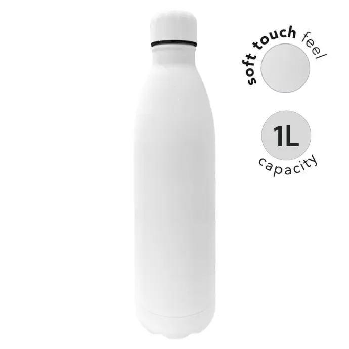 The Soft Touch rubberized finish provides a non-slip grip and a premium tactile feel. Its massive 1-liter capacity and double-wall vacuum insulation ensure ice-cold water stays that way for up to 24 hours, even in the desert heat.